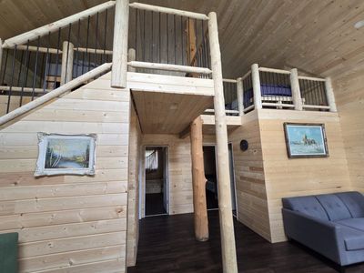 The new large cabin. Two bedrooms and a loft. Typically will sleep 5 people, but can sleep up to 8!